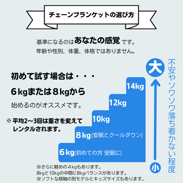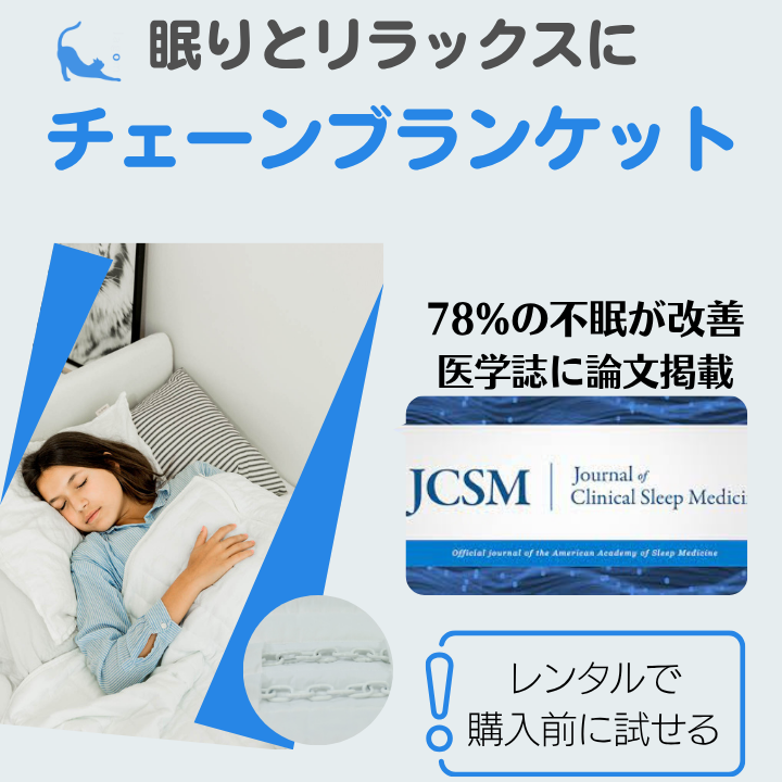 ADHDや双極性障害、うつがあり眠れない方へチェーンブランケットという選択肢を提供しています。 北欧スウェーデンでは精神科外来で保険処方もされているチェーンブランケットであなたも眠れるようになるか宅配レンタルでお試し頂けます。